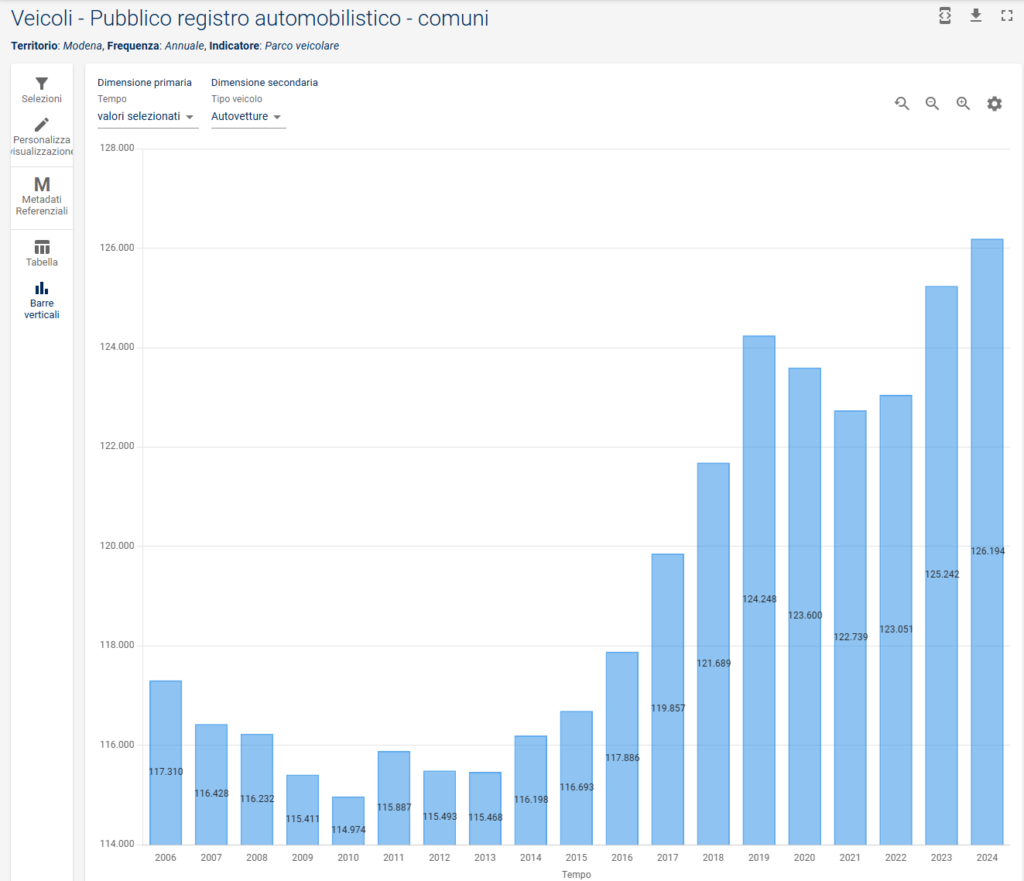 Mentre le città europee riducono la dipendenza dall’auto privata, a Modena il numero di veicoli continua a crescere inesorabilmente, occupando spazio pubblico e generando pericolo.