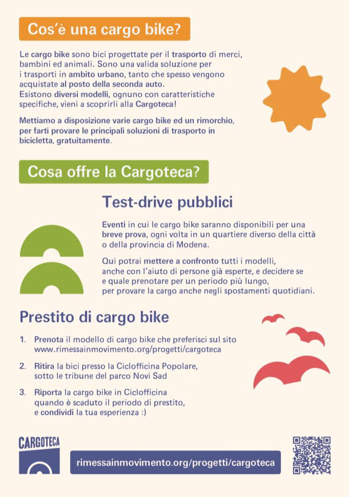 Si tratta di un’iniziativa promossa dalla Ciclofficina Popolare Rimessa in Movimento e sostenuta dalla Fondazione di Modena, in collaborazione con FIAB Modena.